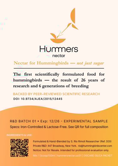 Hummers Nectar is the result of long-running field and clinical work with hummingbirds—tested with hundreds of birds and used in zoological and professional settings.