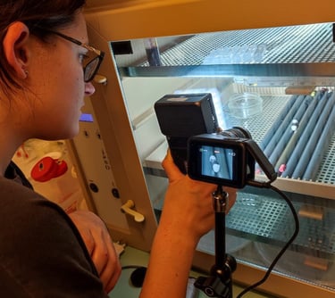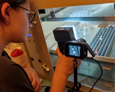 Our Curator Rebeca Guler monitoring the temperature, humidity, and heartbeat of the embryo